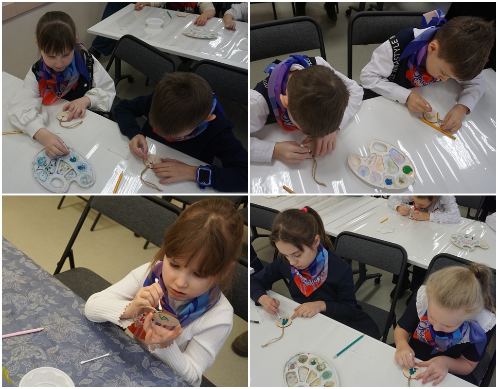 «Это мы удачно зашли!» – подумали дети. И не ошиблись. Потому что продукты имеют срок годности, а искусство - вечно! Особенно, когда предстояло освоить редкую технику пуантилизма. На фанерный «корж» последовательно, слой за слоем, методом точкования наносится новогодний сюжет, символизирующий все радости предстоящего события. Про удовольствие создать такую красоту собственноручно и говорить нечего. Совсем скоро «университетские» ёлки будут блистать особой красотой, и в этом огромная заслуга всех поучаствовавших в проведённом мастер-классе. Особая прелесть в том, что на выходе получились не фабричные штамповки, а уникальные украшения, с неповторимым авторским стилем. О каком печенье тут можно говорить?!